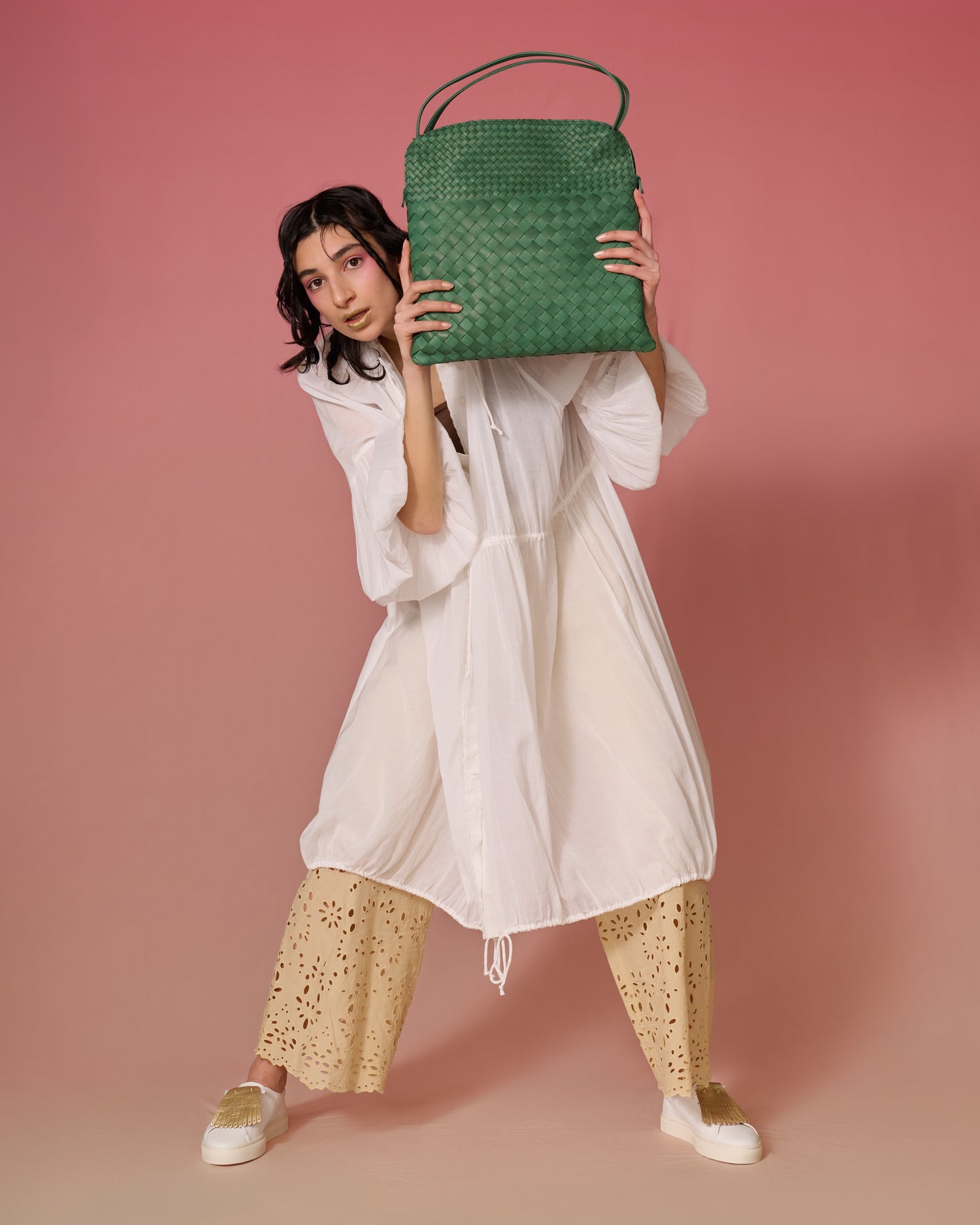 アジアバカンスの陽ざしに、グリーンを 鮮やかなグリーンの編み込みバッグは、シンプルな装いに遊び心をプラスしてくれます。やわらかいレザーを丁寧に編み上げたバッグは、軽やかさと存在感を両立。白いワンピースと合わせれば、アジアのリゾートにぴったりのスタイルが完成 使用アイテム bell la bellハンドバッグ グレージュ $7,042.00 TOSSスニーカー 白色的 $7,042.00 賣光了 numeri<numeri>Shoe Quilt(Metalic Leather)/金色 $1,467.00 賣光了 Arukan Fショルダーバッグ 綠色 $11,149.00 賣光了 村瀬鞄行<村瀬鞄行>mimi rand/紫色 $10,562.00 moja kawaポーチ 羅索 $2,494.00 使用ブランド 上品なデザイン・肌触りのいい革を使ったブランド bell la bell 革靴とスニーカーの要素を合わせ持ったハイブリッドシューズブランド TOSS ハンドメイドにこだわり、1つ1つ職人の手作業 numeri "編み・織り "がテーマ Arukan F ランドセルを通じて、未来へ、そして世界へ挑戦する子供たちを応援する 村瀬鞄行 手縫いの温かさと想いが伝わるアイテムたち moja kawa HIPSTARアイテムコレクション