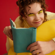 Paperback size book cover. The edges have an adjuster-like design to accommodate thicker books. The leather is soft and supple, so it quickly adapts to the book, and we recommend matching the color to the book. The metal fittings that hold the bookmark in place are made of a different color of leather serving as a nice accent.
