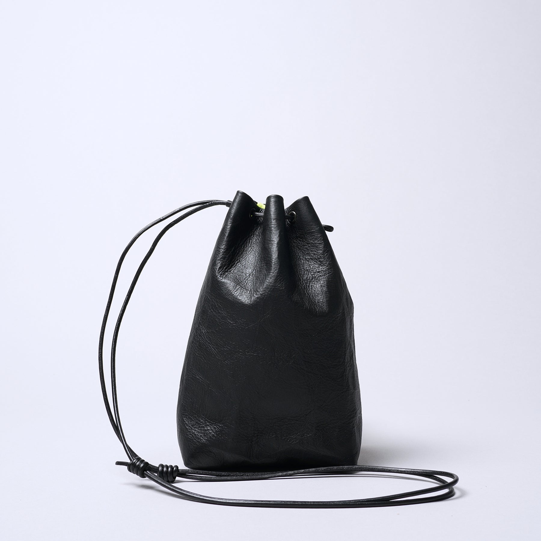 ■Features an adjustable leather strap allowing use as a handheld drawstring pouch or shoulder bag.