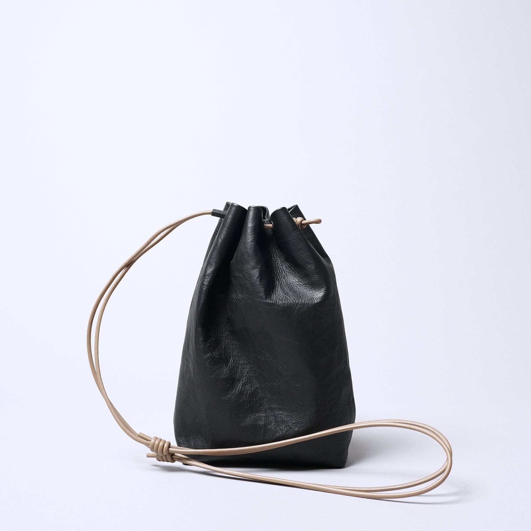 Super Lightweight Dyneema Leather Drawstring Bag M / Black x Camel
