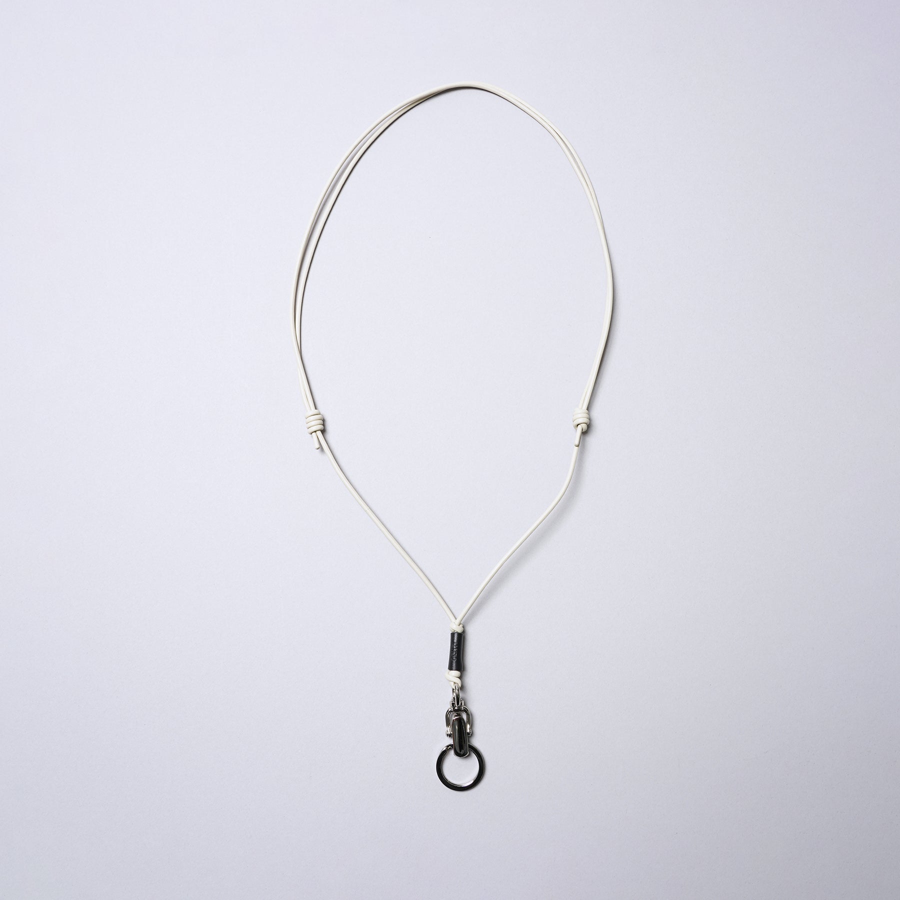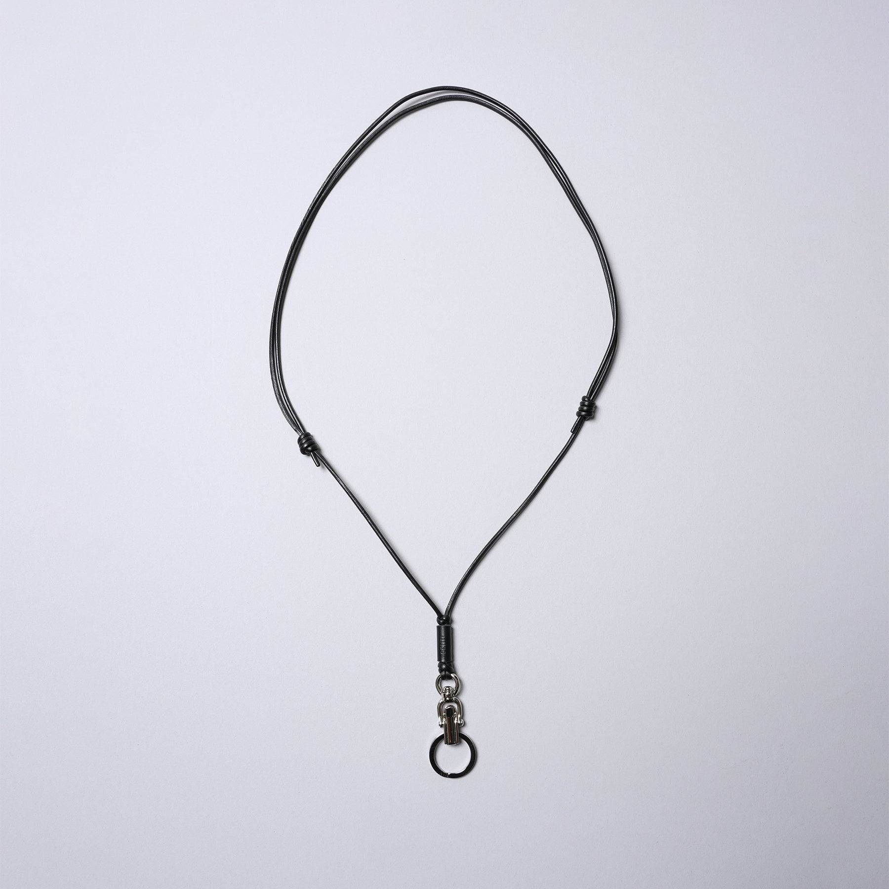A neck strap featuring a double-ring clip-on snap hook. Use it as a glass holder or key holder with the ring attached, and remove the ring to use it as a smartphone holder or name tag holder.