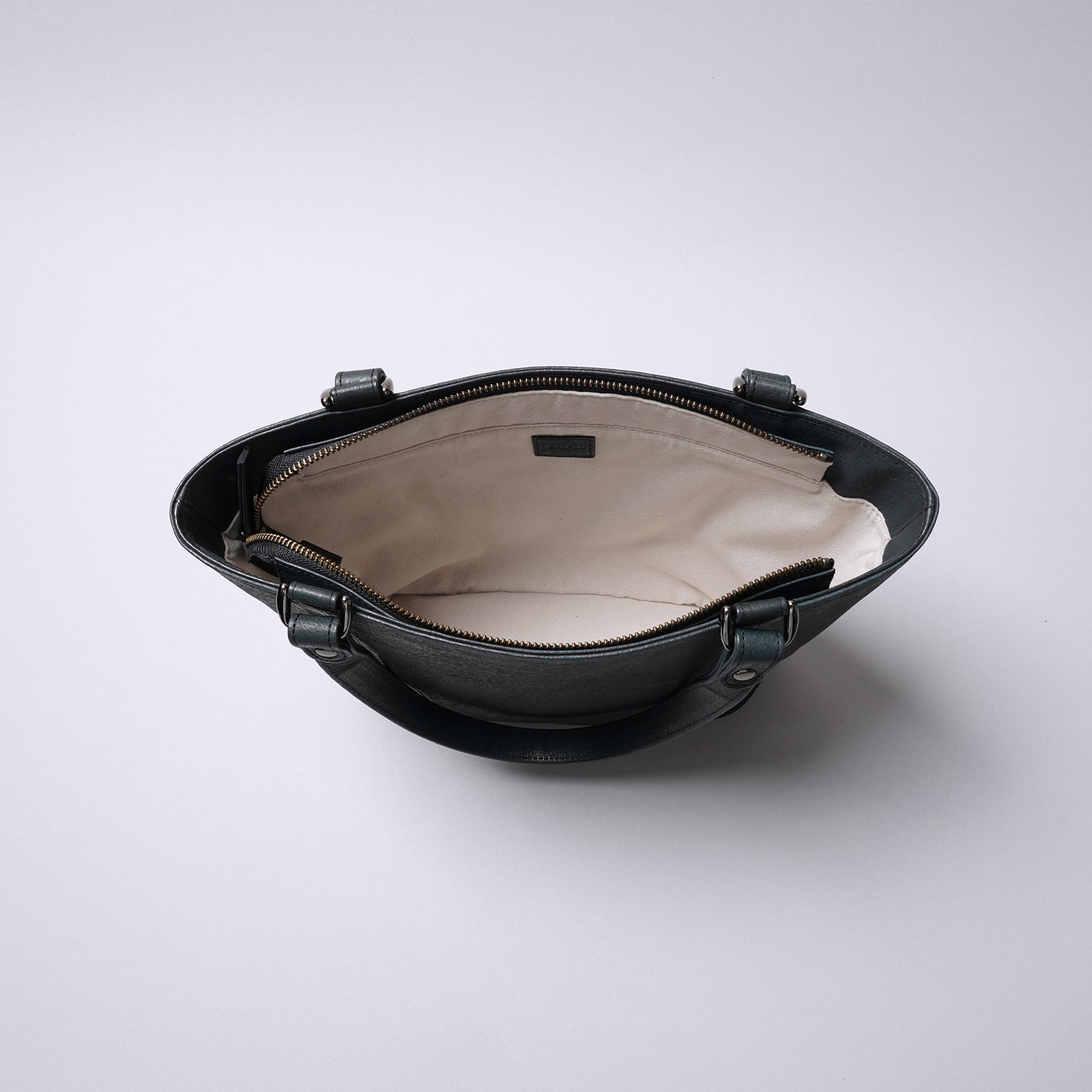 This sophisticated tote bag for adults is crafted with luxurious, rare black pig leather. It combines the unique lightness of pigskin with durability that rivals cowhide, making it exceptionally practical. The leather softens and molds to your hand over time, developing a cherished patina. Inside, a convenient pocket holds small items, while the shoulder-friendly handle length ensures comfort even on days with heavy loads. Its unique texture and supple feel deepen in character with use. While simple in design, its substantial presence elegantly complements any outfit. A premium piece suitable for daily use and equally at home in business settings. Weighing a remarkably light 340g for a genuine leather tote, it also excels as an excellent secondary bag.