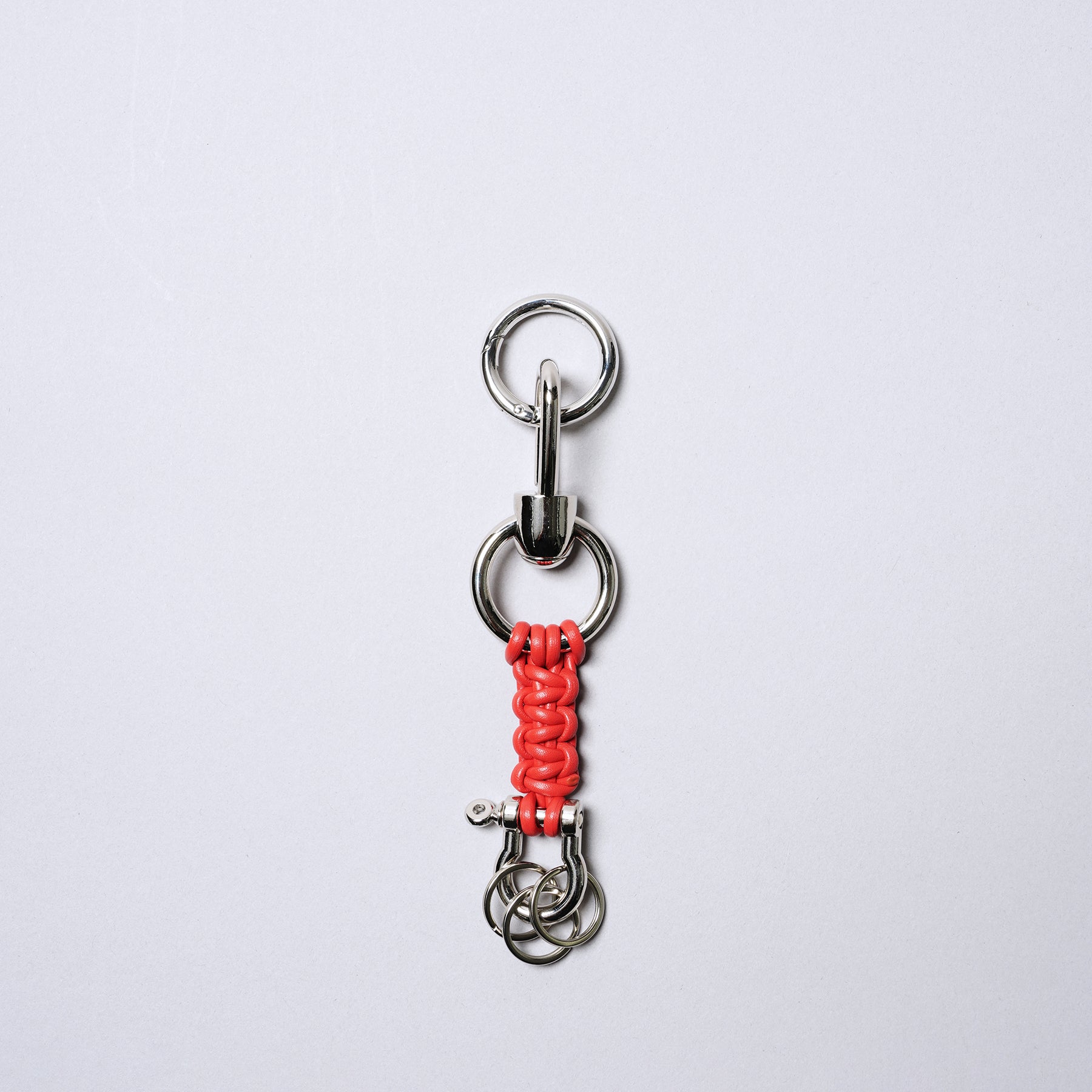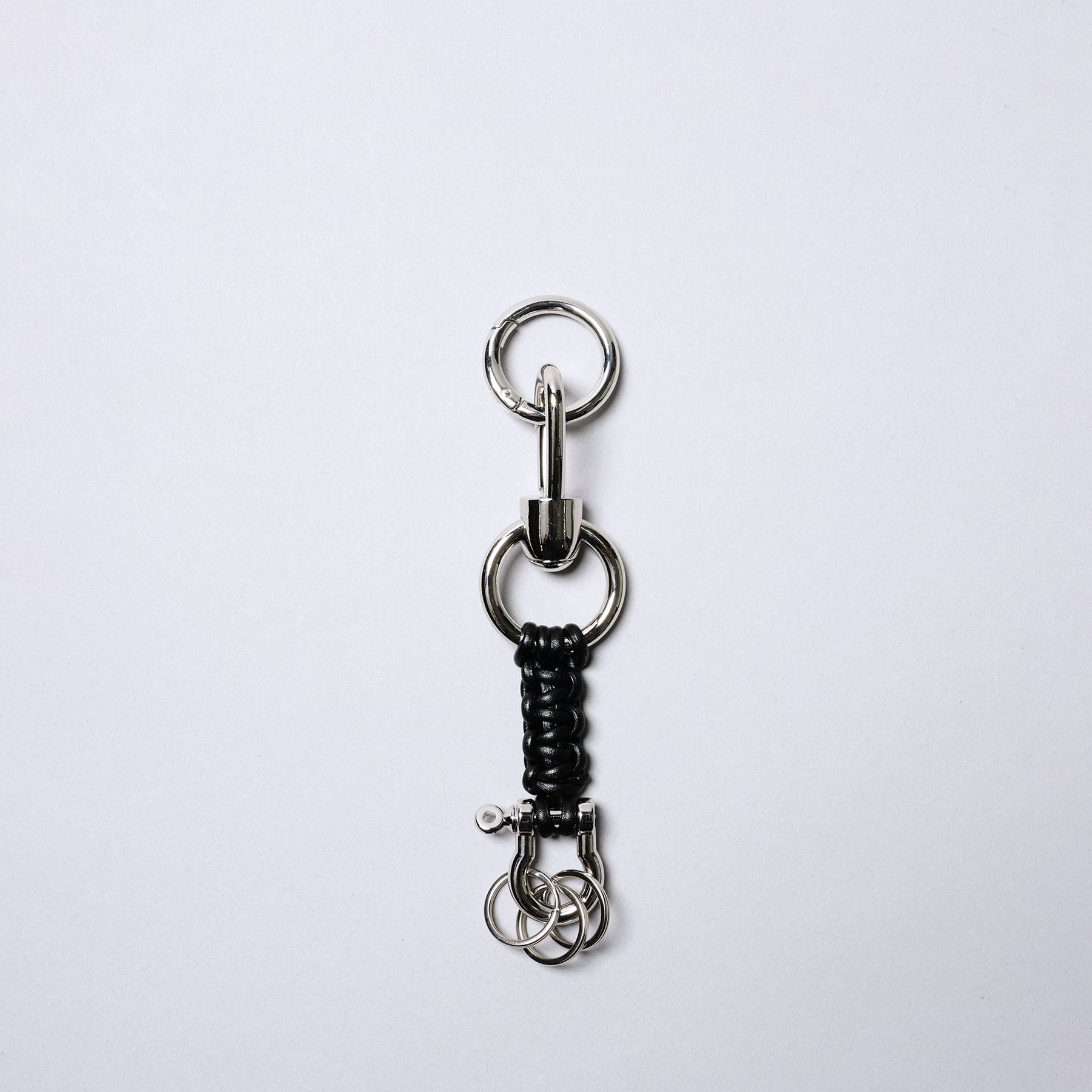 Leather cord braided keychain with hook carabiner and screw-lock D-ring