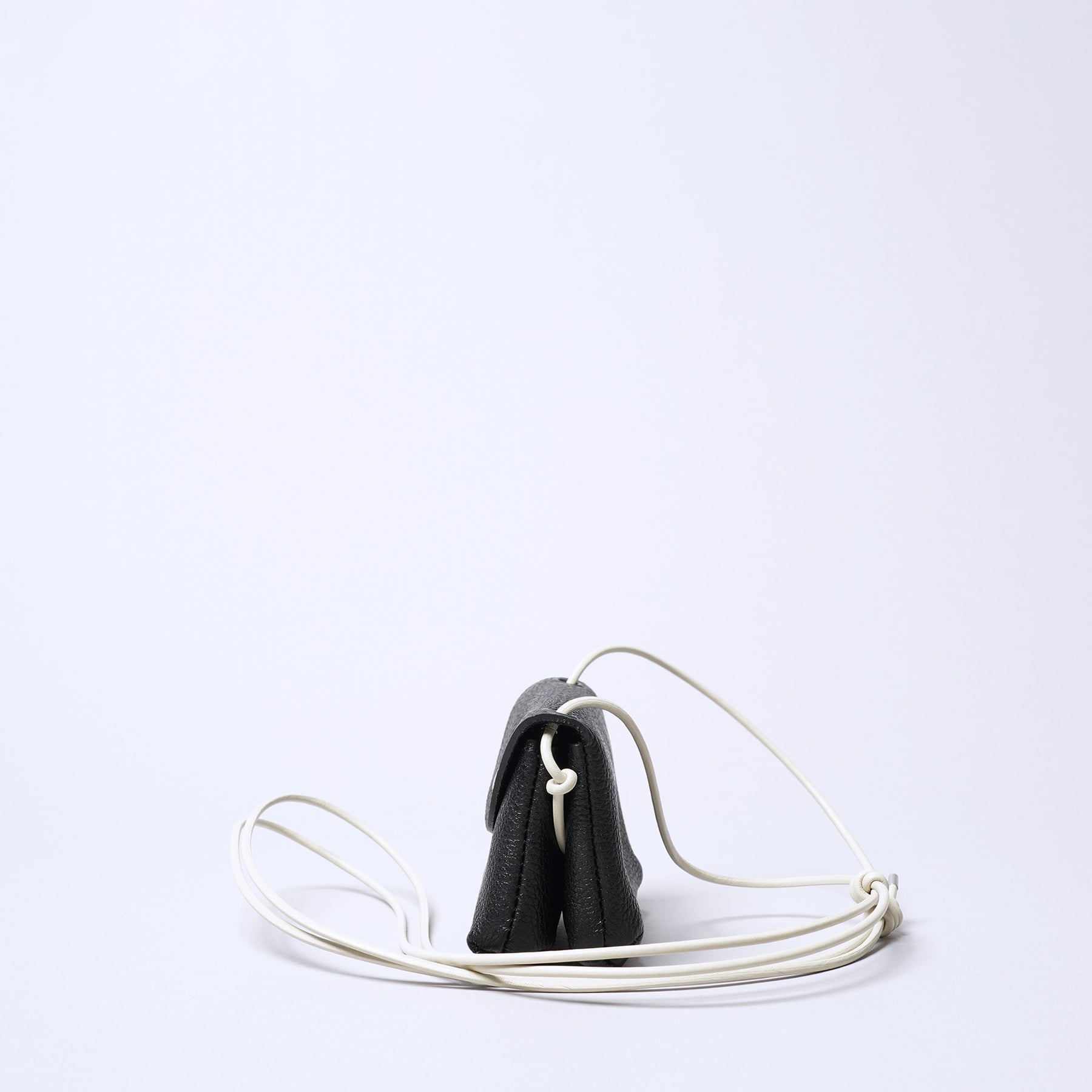 <SENTI FLATTER THE SENSES> Shrink Leather Neck Wallet / Ivory x Black
