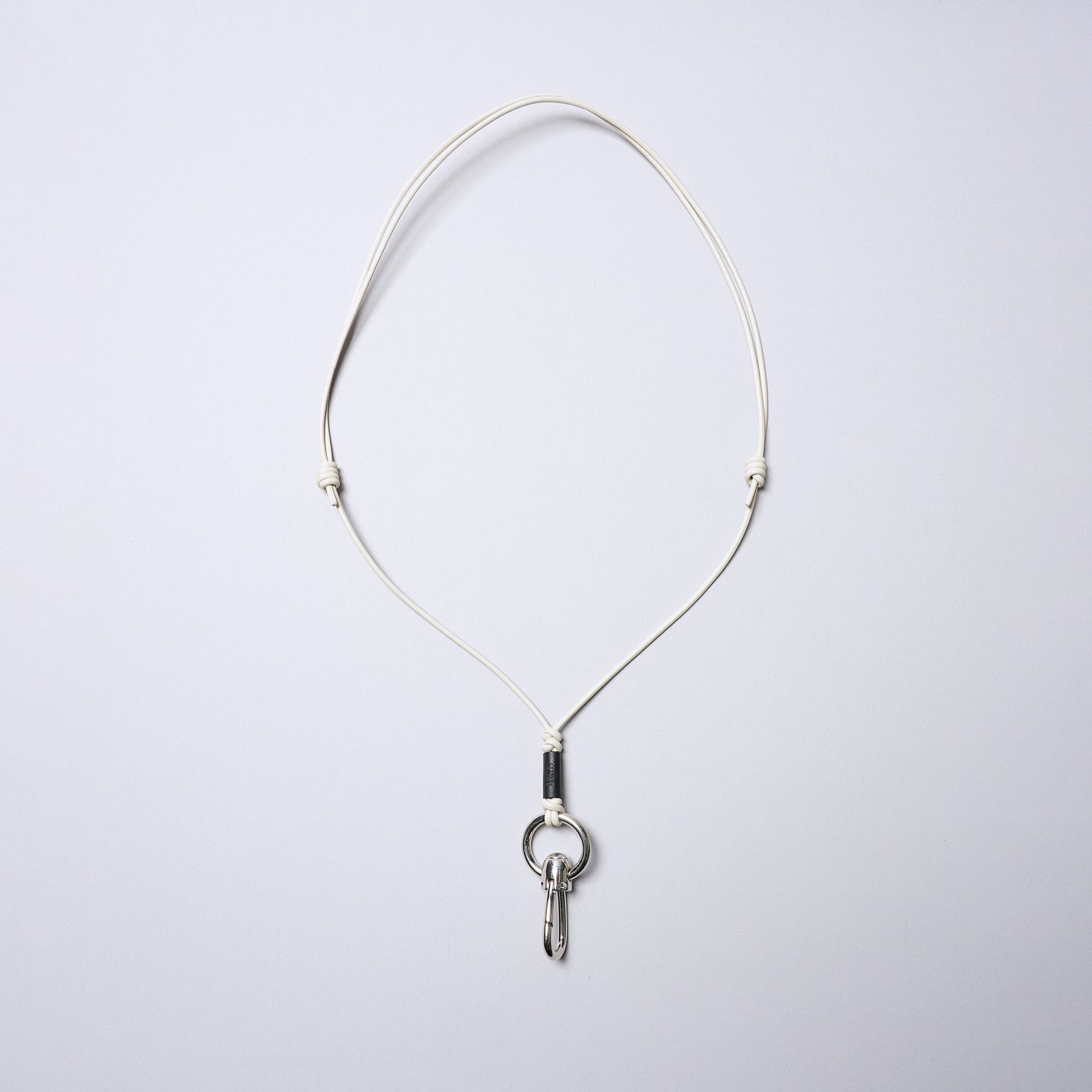 A neck strap featuring a distinctive hook-style carabiner at the top. This multi-purpose strap can be used as a key holder, smartphone holder, or name tag holder.