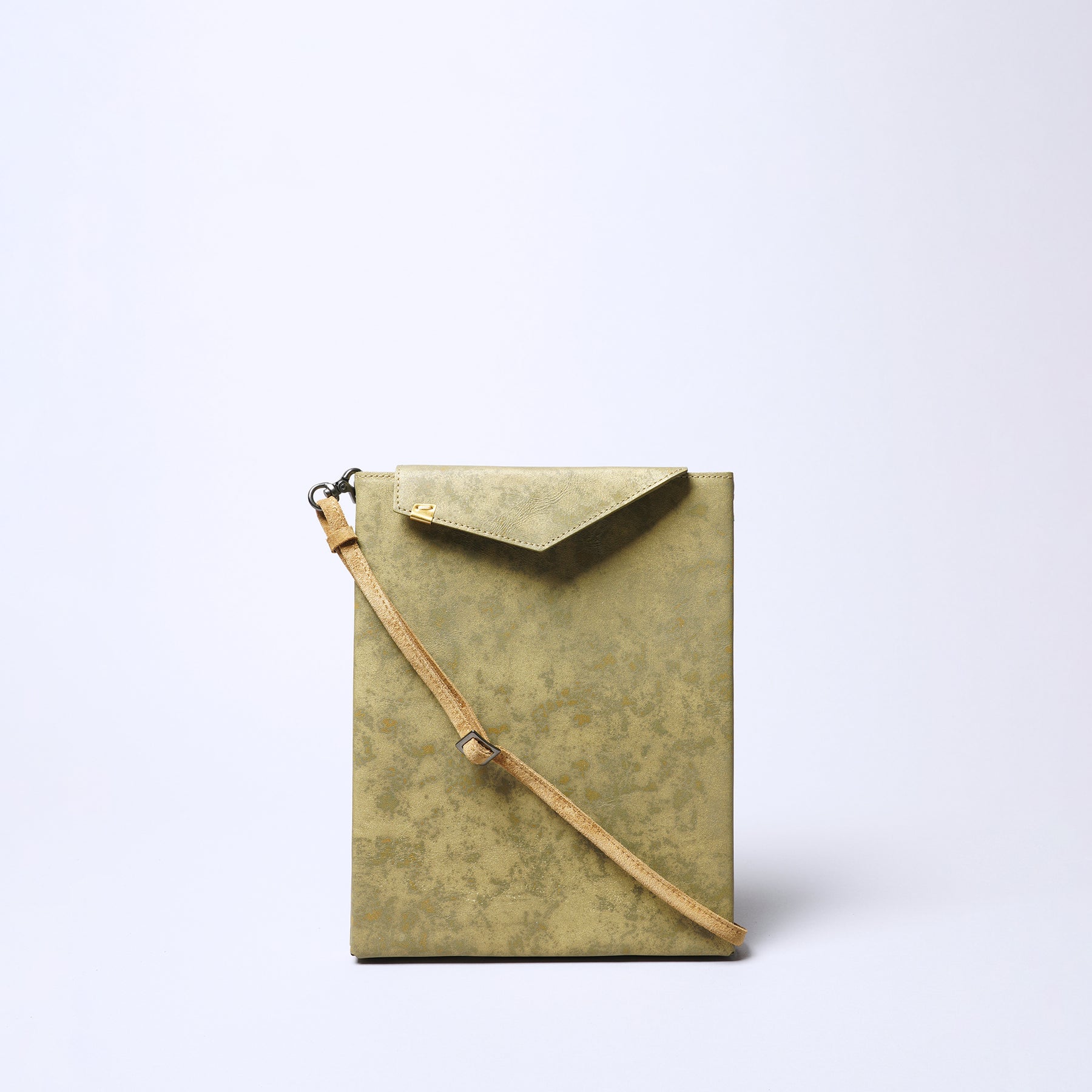 A metal plate is hand-stitched onto the flap, serving as an accent that embodies the keu aesthetic. The included leather strap is removable. The reverse side of the rust-effect leather features velour leather. It offers a very pleasant feel, with color coordination matching each shade.