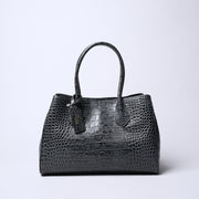 This versatile series excels in both business and everyday settings. Crafted from elegant crocodile-embossed cowhide leather, the central divider-style pocket can be detached with a snap hook and reattached to the back. It features ample pockets for cards and pens, offering great storage like a diaper bag.