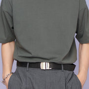 This military belt is made of Italian leather with a unique uneven texture. The more you use it, the deeper the color and the more glossy it becomes, allowing you to enjoy its change over time.
