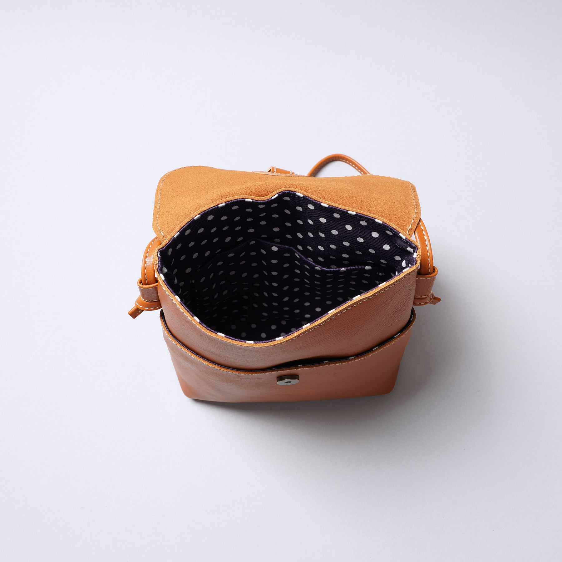 小シボの立った表情のある牛革に、太めの0番ステッチとくるみボタン使用したロングセラーシリーズです。裏地のドット柄も特徴的です。経年変化が楽しめる素材なので、使い込むほどによりソフトな良い表情に変化し変化します。