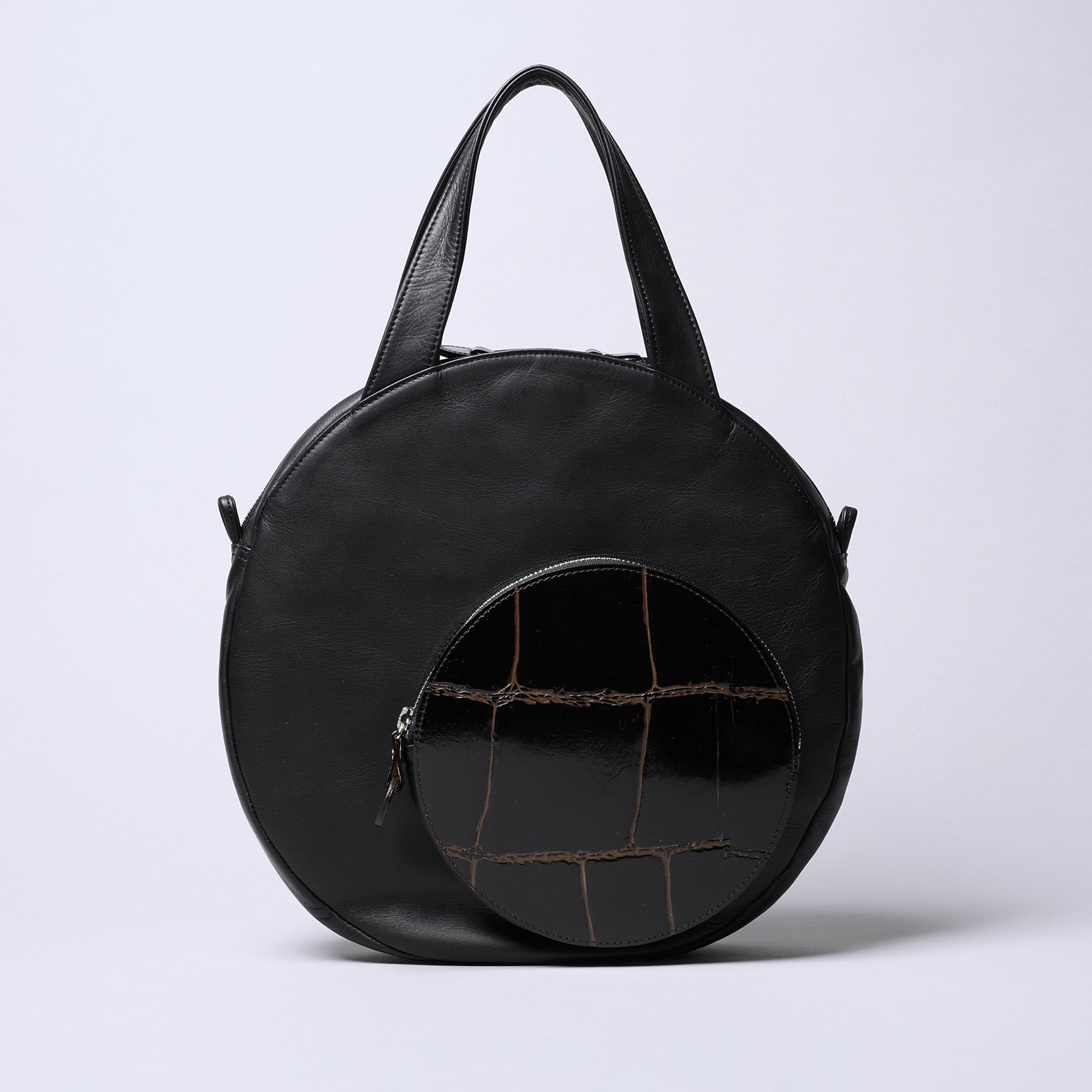 <リアルマインド ブラックレーベル>アポロン 2way丸形ショルダーバッグ 大/ブラック