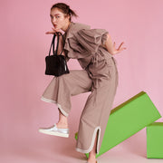 四角く幅広の底マチが立体的なシルエットをかたちづくる「スクエアダッフル XS」。底マチが幅広で、その分たっぷり入る。でも、肩掛けしたときの見た目はいたってコンパクト。体に対してバッグが大きく見える心配がなく、小柄な女性にとくに好まれるゆえんです。また、ハンドルは長すぎないので、手に提げたときもバランスよく見えます。左右どちら側からも開けられるダブルファスナー仕様なので、自分にしっくりくる位置でファスナーを閉じておけます。