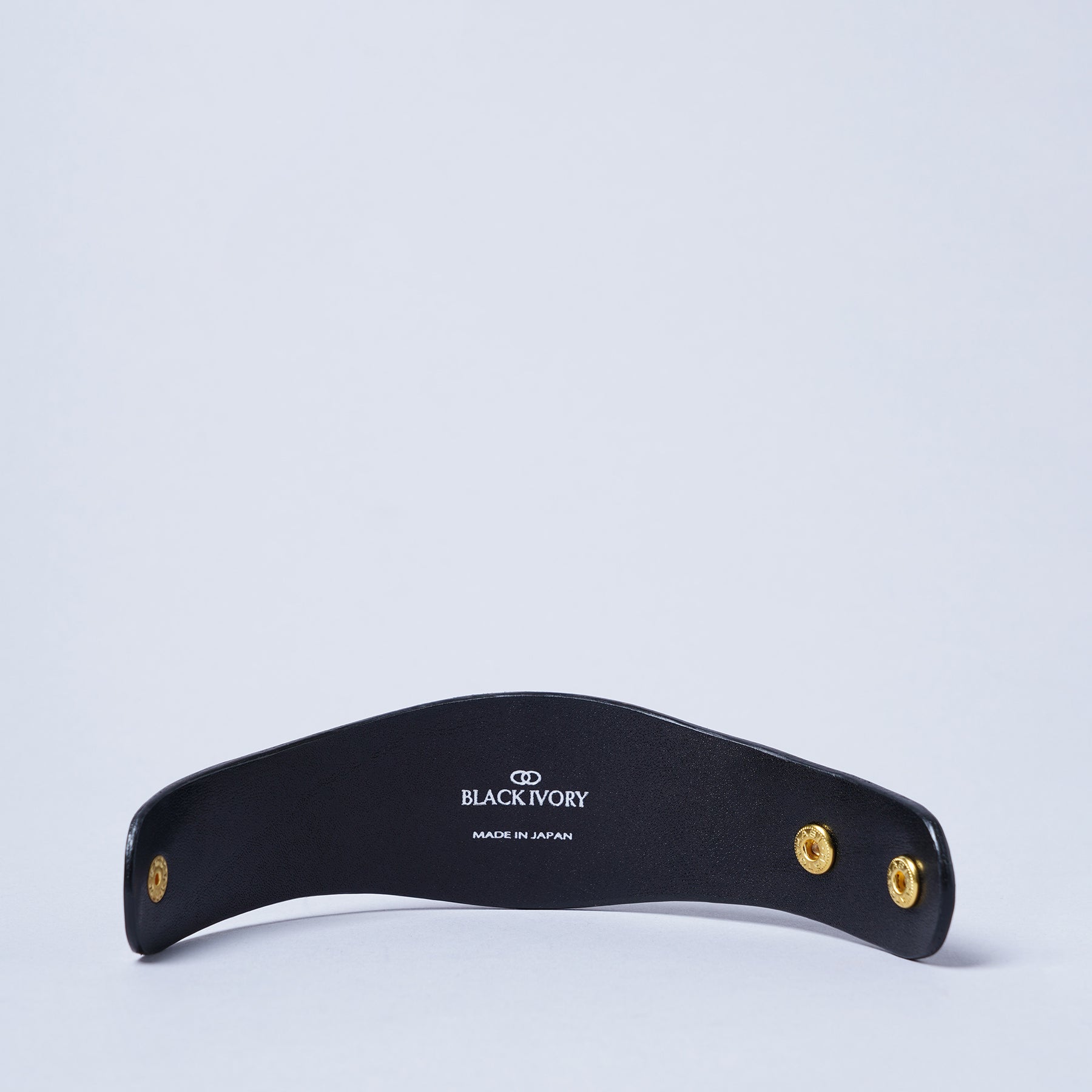 大ぶりのベルトに打刻による紋様をあしらい、尊さ、荘厳さ、神聖さを感じさせるバングルを作りました。サステナブルな観点から、薬品を使用していない植物性タンニンでなめされた上質な国産牛革を用い、丁寧に作り上げています。
