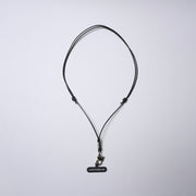 しなやかなレザーコードを使用、結び目をスライドさせることで長さ調整可(80cm~最長150cm程度/斜め掛け可能)