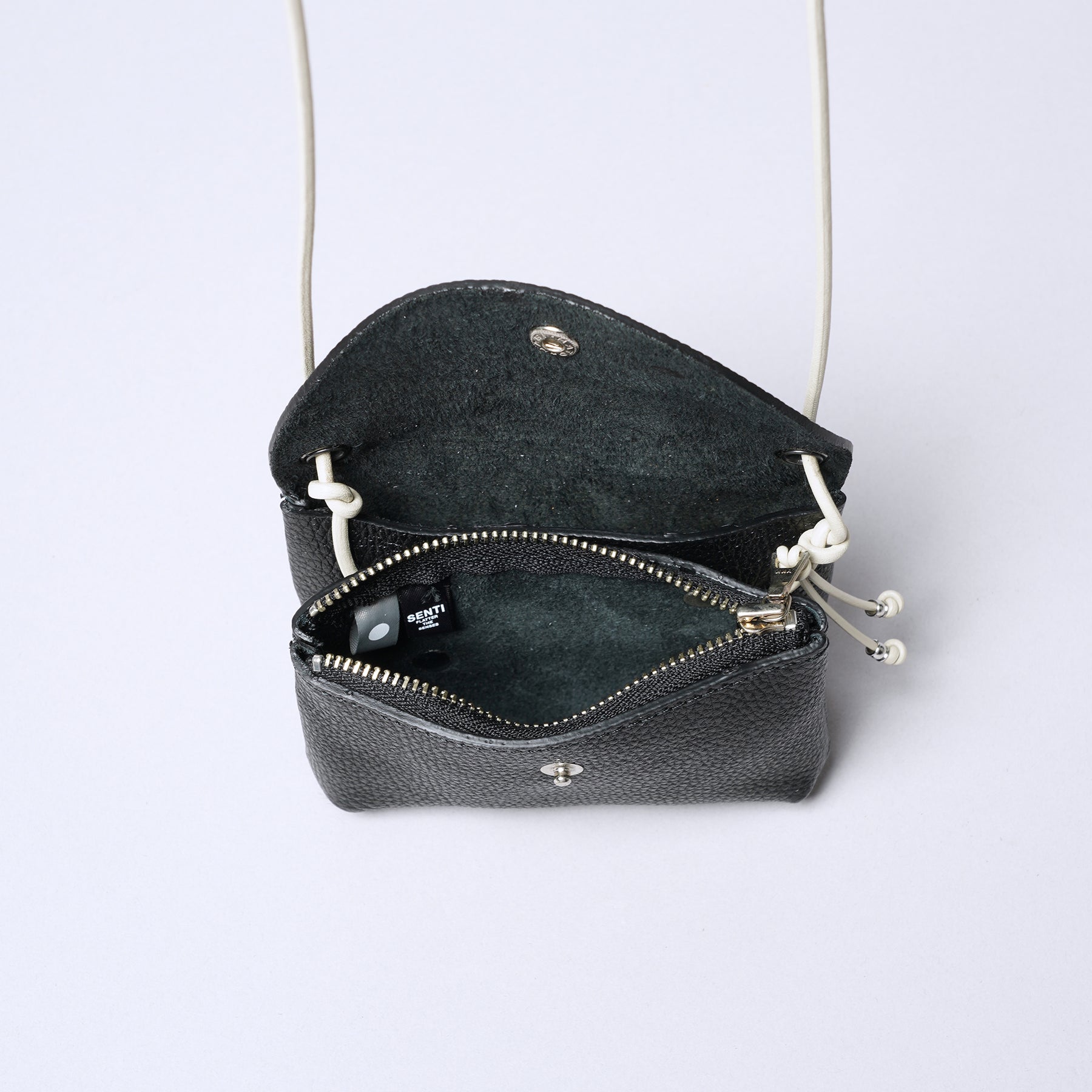 <センティ フラター ザ センシーズ>シュリンクレザーネックウォレット/ブラック