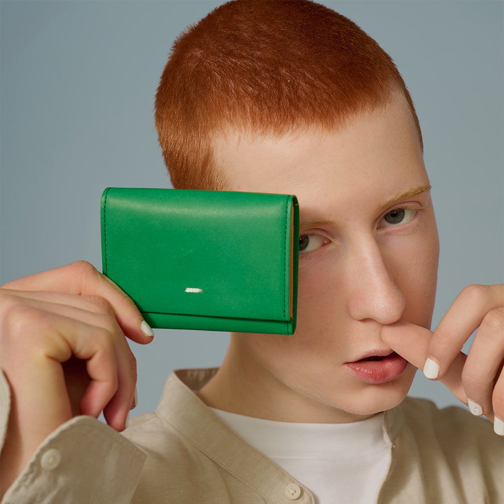 ロジカルシリーズのDNAを受け継ぐモードなスモールグッズ 。素材のコントラストや経年変化 が楽しめるノーブルなコレクション。ロジカルシリーズの雰囲気をそのまま名刺入れに。ベーシックなブラックに加え、個性光るシルバーとグリーンの3色展開。マチは蛇腹式になっており、カードの端が折れにくいつくりで名刺を出す所作もスタイリッシュに決まります。外側にオープンポケット1室、内側にはメイン収納の他にオープンポケット2室あるので、容量も多く便利にお使いいただけます。どれも迷ってしまうカラーバリエーションなので、コーディネートやバッグ、他の小物と合わせていただくのもおすすめです。エスティーヌは、「モード」「アート」「コンテンポラリー」をキーワードにカテゴライズの枠を超え、自由な自己表現を求める大人に向けた、スマートでモダンなアーバンスタイルを提案するブランドです。