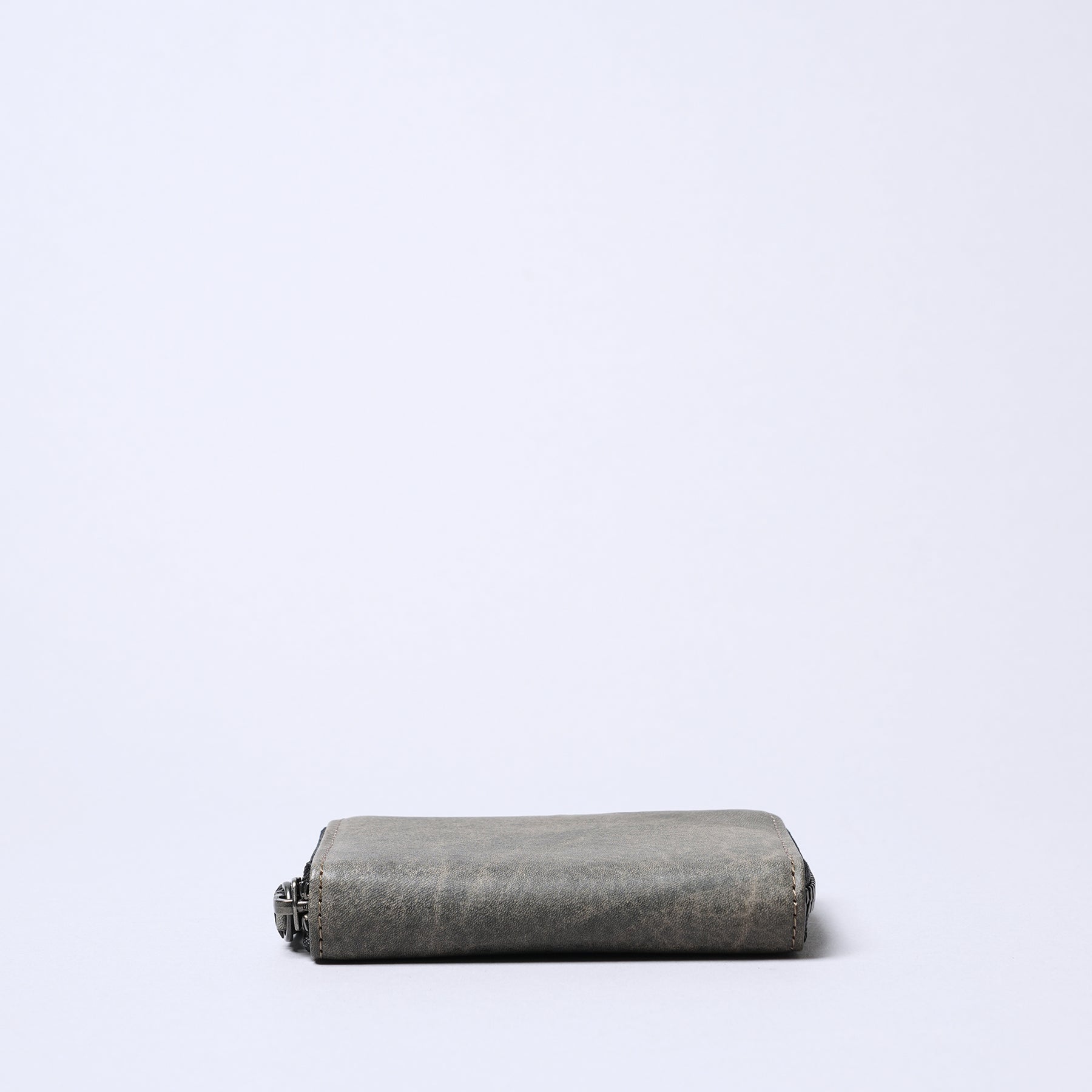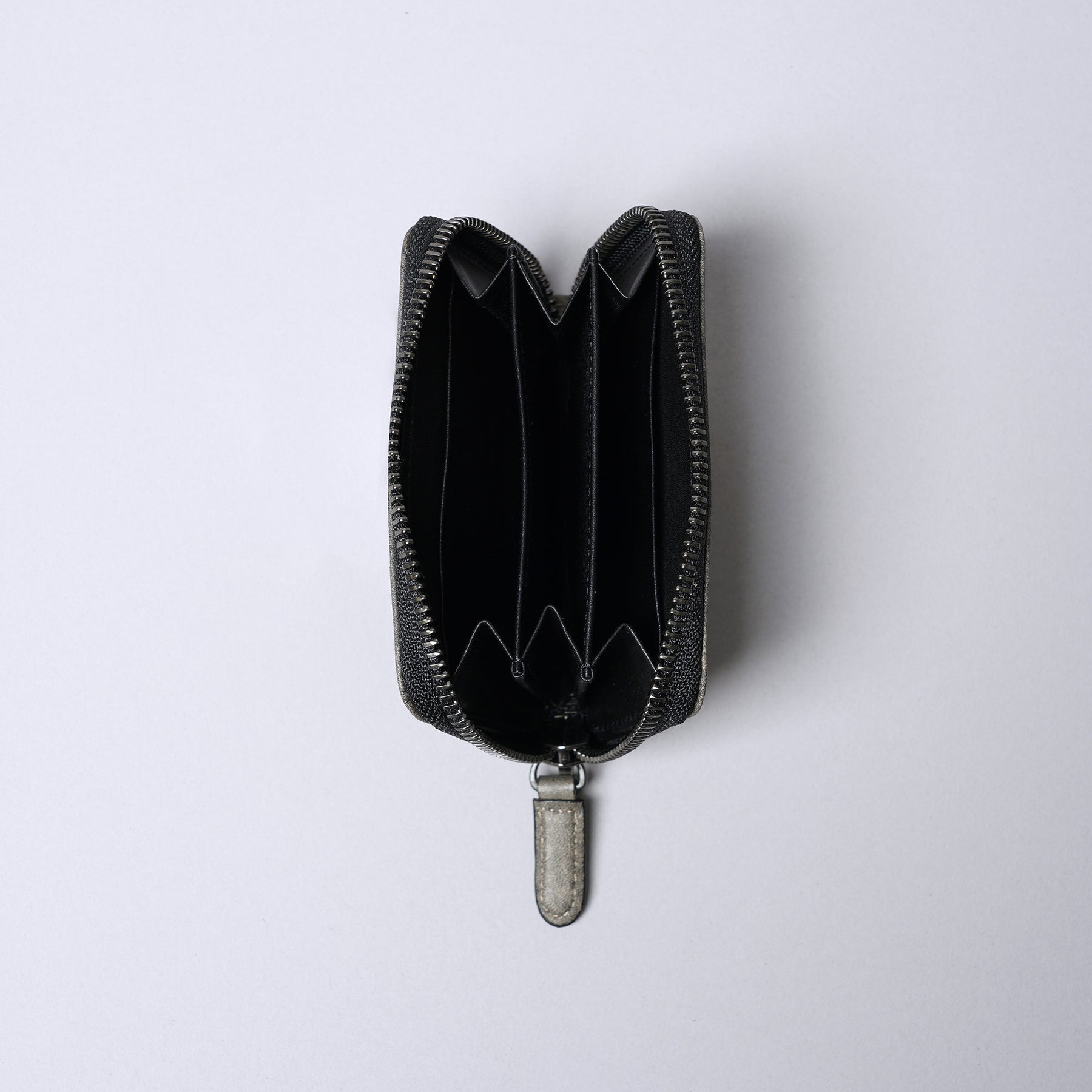 採用生後6個月至2年左右的中牛皮製作而成的這款拉鍊零錢包,以細緻且柔滑的觸感為其特色,與成牛皮相比雖然厚度較薄,仍因緊密的纖維而能擁有良好強度。越使用皮革將越柔軟貼合手型,還可享受美麗的舊化現象。此款牛皮以日本古老的染色技術「墨染」處理,墨汁獨特的深邃黑與單一黑色調有所區別,賦予皮革更為內斂的氣質。由於以手工染色,每塊皮革呈現出的色澤和深淺皆有不同,展現出獨一無二的個性。墨染的自然質感更加突顯皮革本身的材質特性。