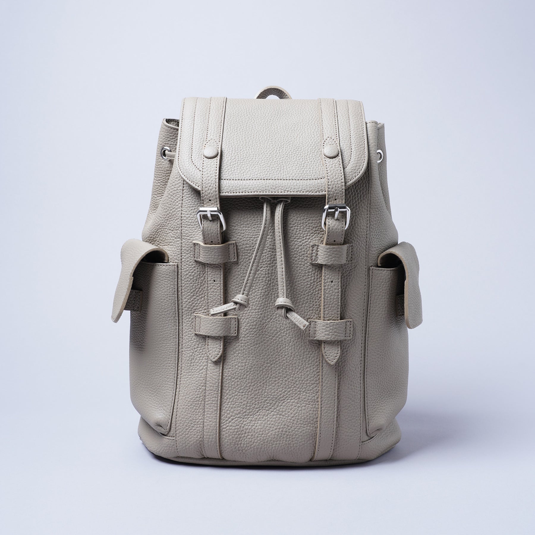 🇯🇵這款大容量抽繩式後背包材質選用日本國內老字號鞣革廠所生產的皮革,高雅細緻的表面紋理展現出獨特高級感。