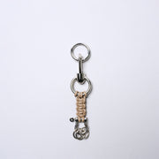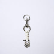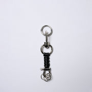 這款鑰匙圈結合了皮革編織繩、登山扣環及螺絲式D型扣環設計