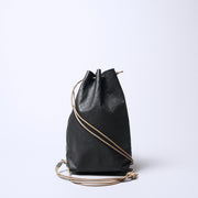 超輕量Dyneema皮革 抽繩束口包L/黑色X駱駝色
