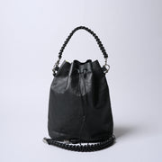 ■簡約的包身設計,搭配可拆卸式皮革編織提把與肩背帶(長度可調整),成為包包點綴亮點。